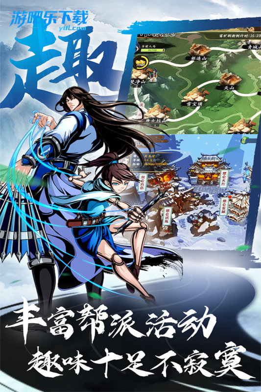 跨服竞技:论剑、武林大会、跨服 BOSS,排名奖励元宝与稀有材料。