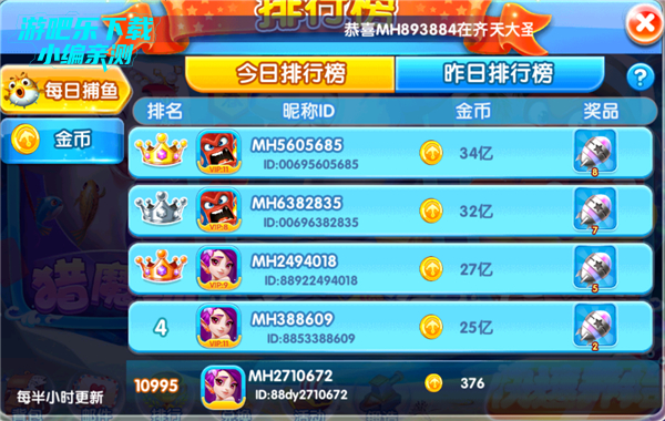 1、直接捕鱼就能参赛,无需报名。排行榜会按捕鱼获得的金币进行排名