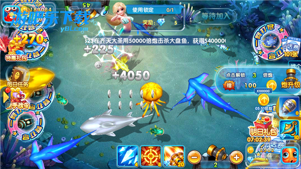 拥有锁定、激光等辅助道具,还有弹头、砍刀等特殊道具,可通过任务、活动及 BOSS 掉落获取,助力提升捕鱼效率。
