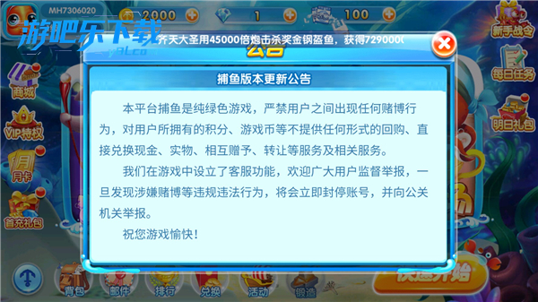 2、在任意渔场捕鱼获得的金币都会统计(包括用弹头)