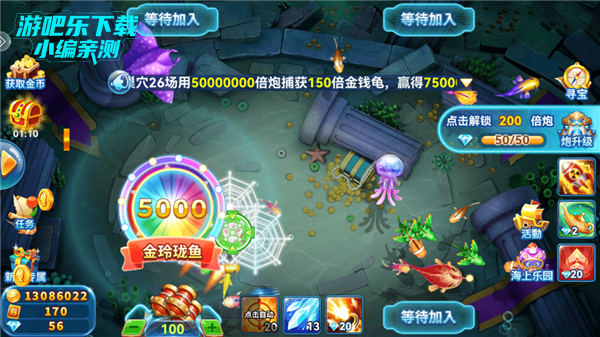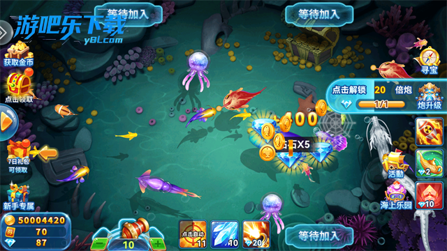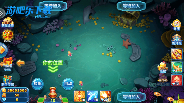 2、通过不断地打鱼获得钻石升级自己的炮弹,更高级的炮可以解锁新场地。