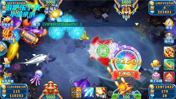 炮台升级:用金币 / 钻石提升炮台倍率(最高数百倍),增强捕鱼效率。