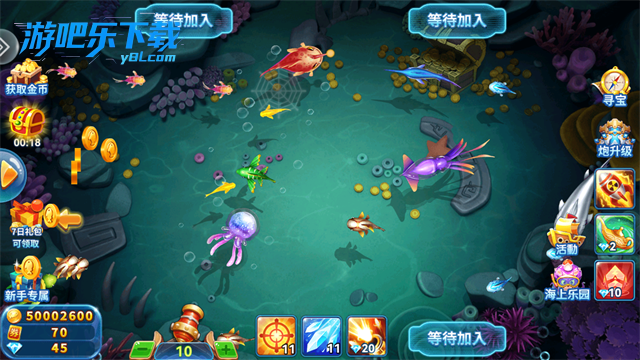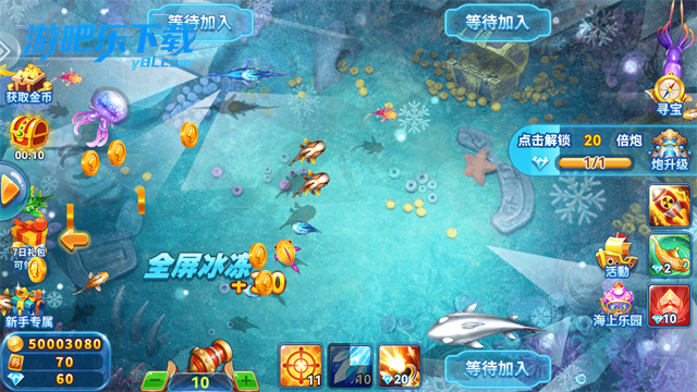 特殊道具:炸弹、冰冻、激光等,群体捕获 / 控制鱼群,提升爆率。