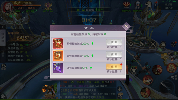 1、战斗中使用经验瓶可以增加经验获取。