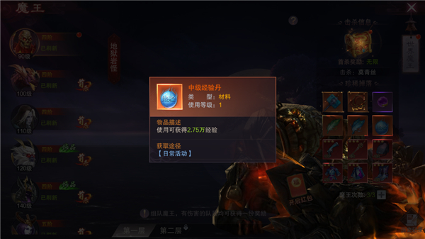 3、挑战魔王可以获取经验中级经验丹。