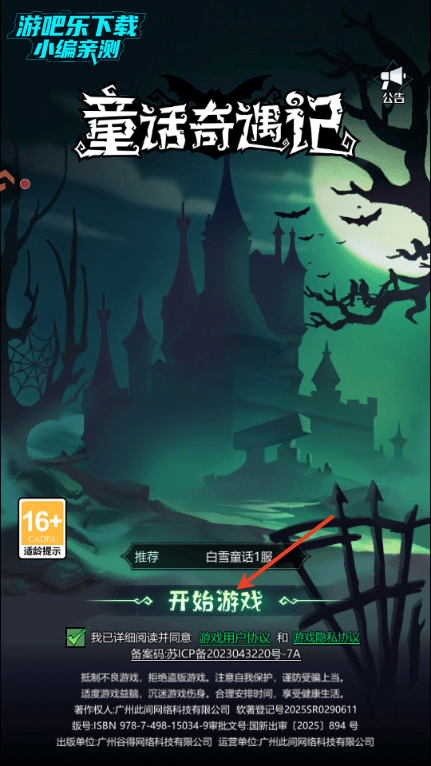 1、下载安装好童话奇遇记,运行游戏选择区服并开始;