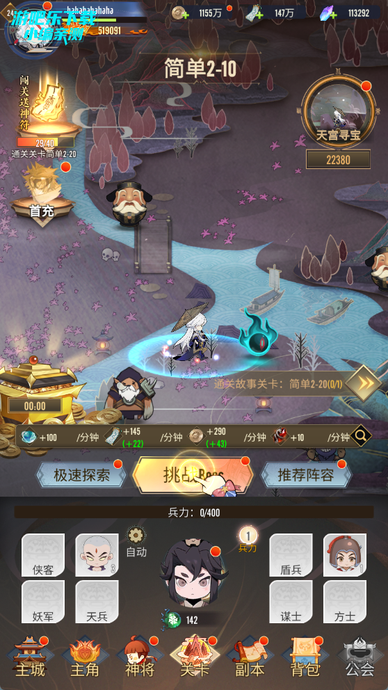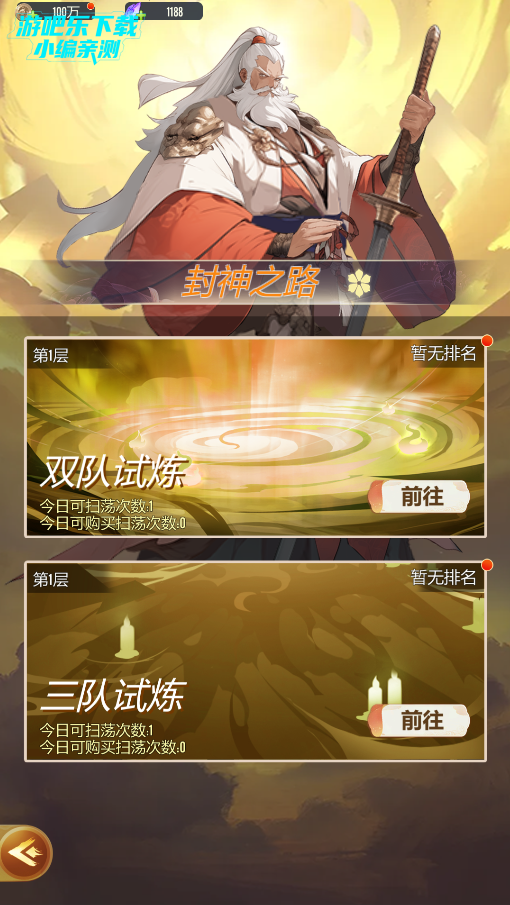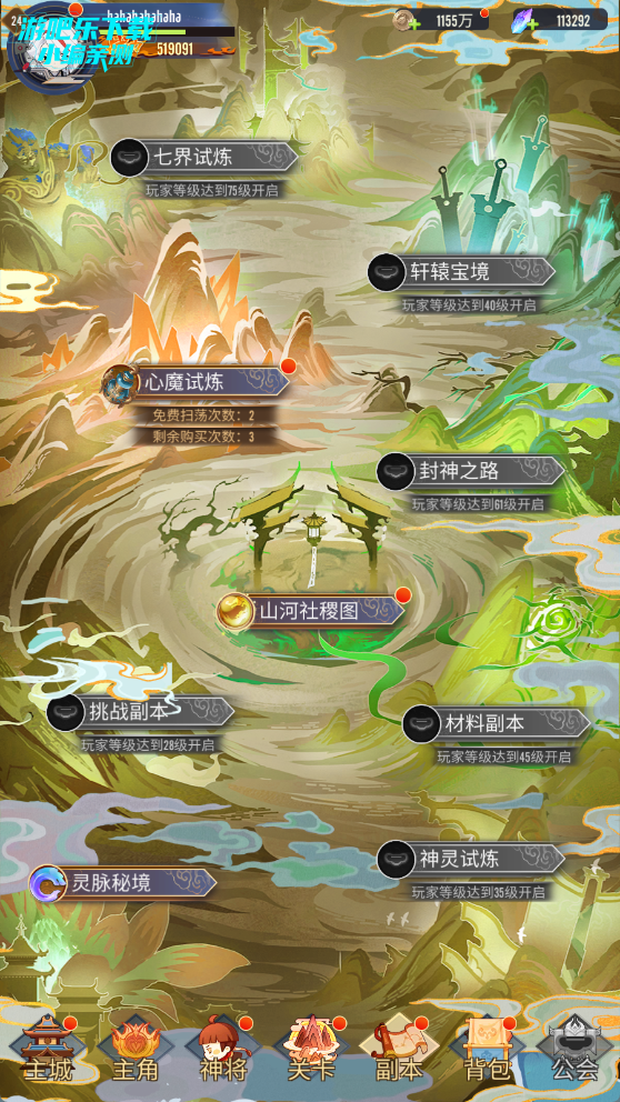 • 挑战心魔试炼:获取神将升级材料,每关还能得“仙豆”抽神兵(快速提升属性);