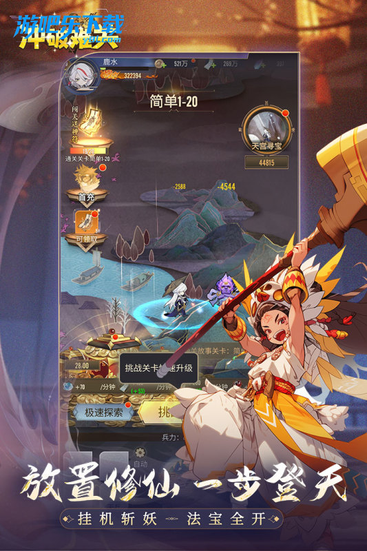 冲破难关官方版下载是一款西游仙魔题材的策略放置卡牌手游。核心玩法为五大阵营神将搭配 + 离线挂机收益 + 主角养成体系,主打低肝度与策略性。感兴趣的小伙伴快加入进来吧!