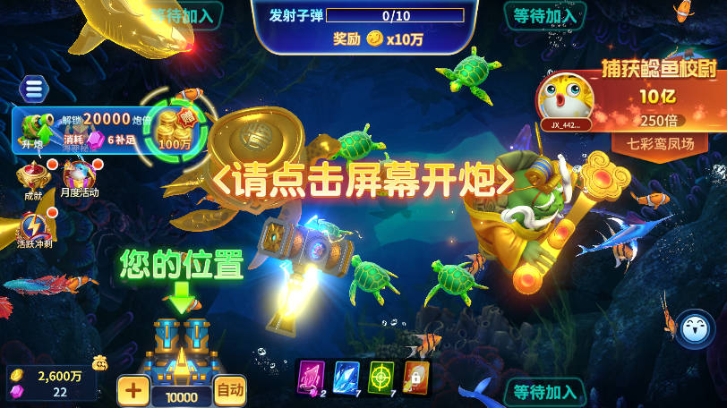 2、每次开火消耗金币,捕获鱼群后会得到相应的金币奖励。