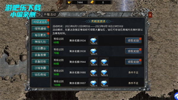 1、新手入坑参与开服活动,升级完成对应的活动之后领取大量奖励。