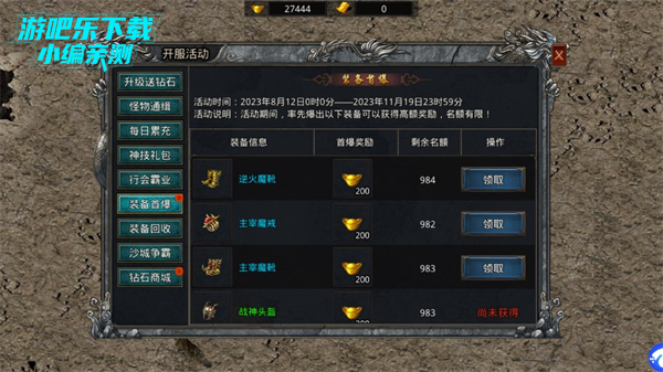 3、接着就是装备首爆,每一次爆出新装备都可以获得大量的元宝。