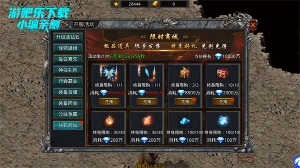 开局:注册→选单职业→上线领 2w 钻石 + 侍神令→加入行会,组队打 BOSS。