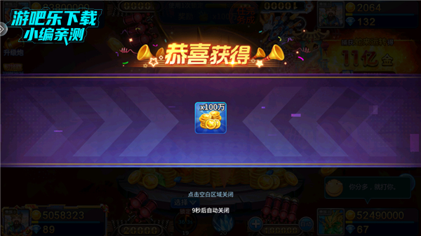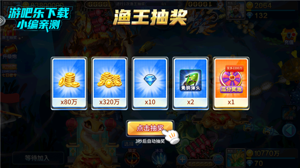 3、玩家需通过点击屏幕来释放炮台进行捕鱼;