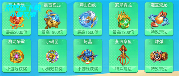 特殊鱼:拥有特殊玩法的鱼种,击杀后根据特殊玩法奖励金币。
