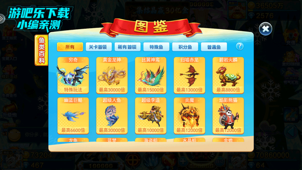 积分鱼:击杀后,可获得捕鱼积分的鱼种,捕鱼积分可在渔王抽奖中抽奖。