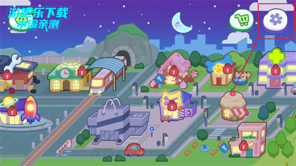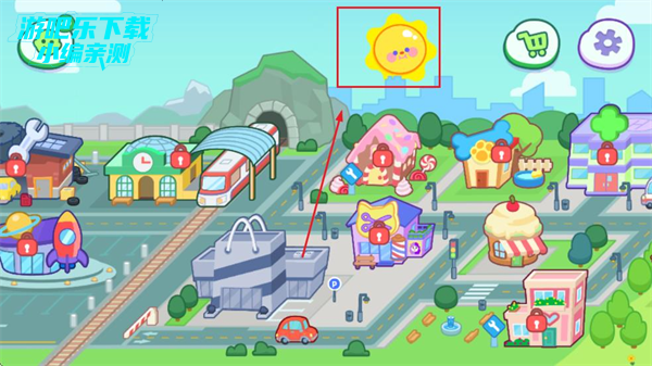打开汤姆猫小镇游戏,进入后默认为白天,点击上方的太阳