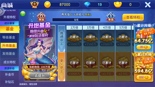 2、提升炮台倍率