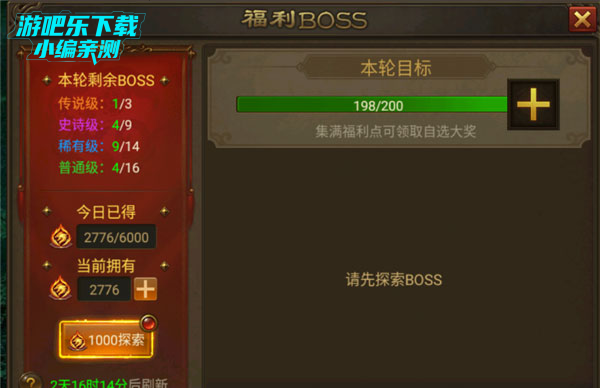打BOSS会获得BOSS积分,每获得1000积分,可以召唤一只福利BOSS,击杀可获得元宝,道具等材料。