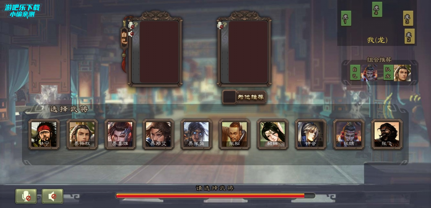 选将时可以点击队友头像下方“为他推荐”查看队友拥有的武将并且推荐他使用。