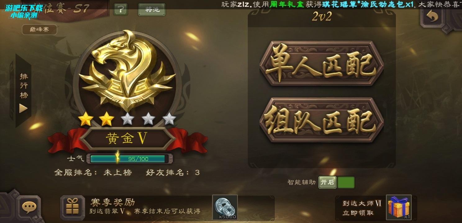 排位赛位于三国杀首页正中间,排位赛在所有游戏当中都是具有一定重要性和庄严性的。三国杀也不例外。