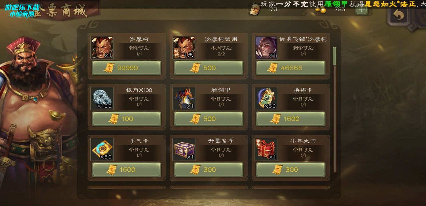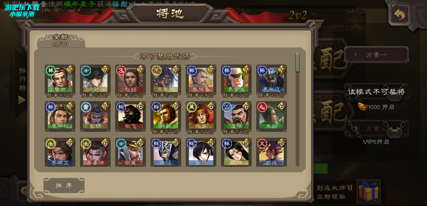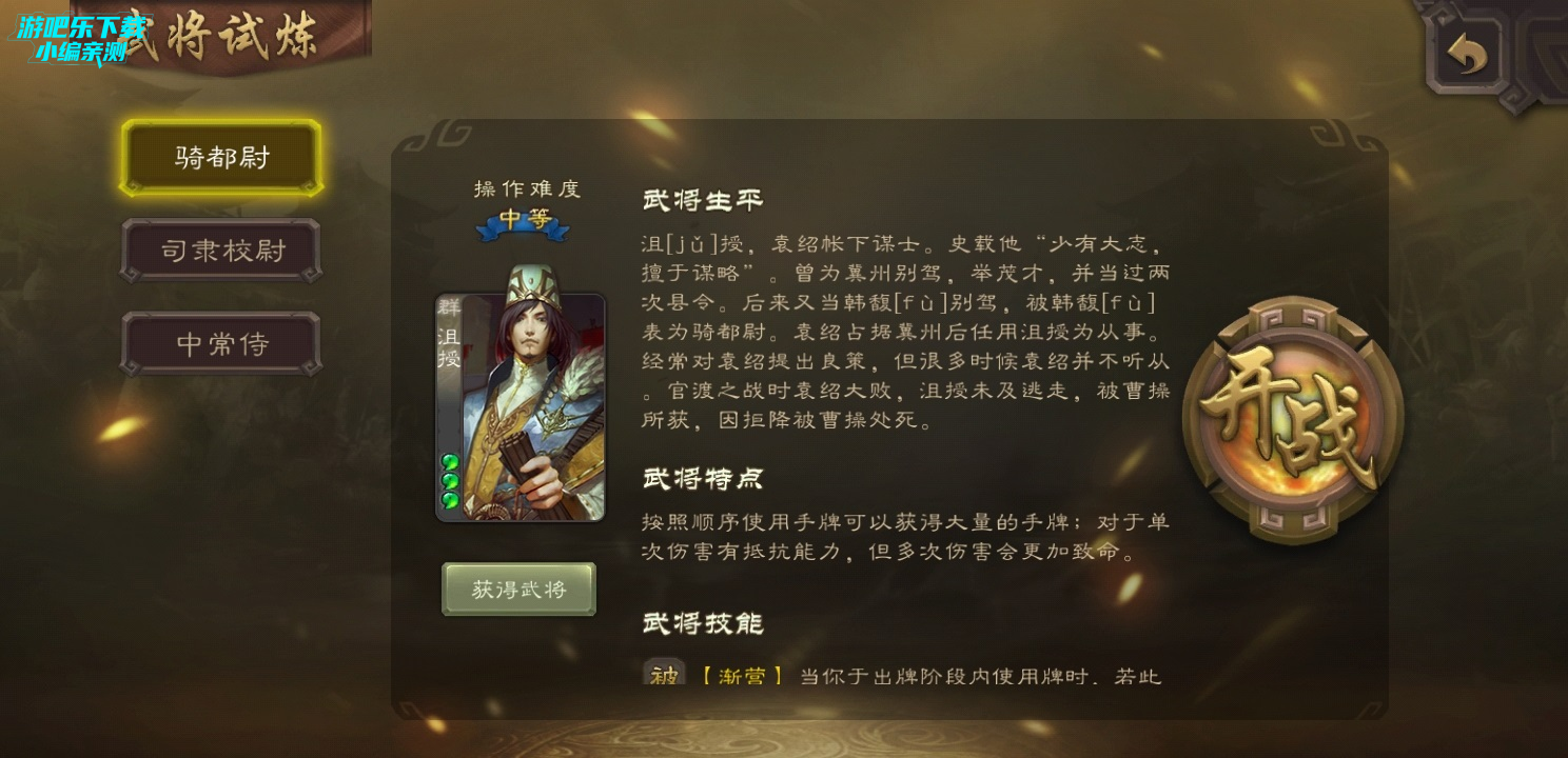 再来就是武将试炼每天随机更新关卡的指定武将,这些指定武将可能是标将,但是也可能是留赞张让这种萌新很难接触到的武将,这样一来,萌新可以通过武将试炼进行实战去了解熟悉一些武将的技能和玩法,对于自己来说是很大的进步。