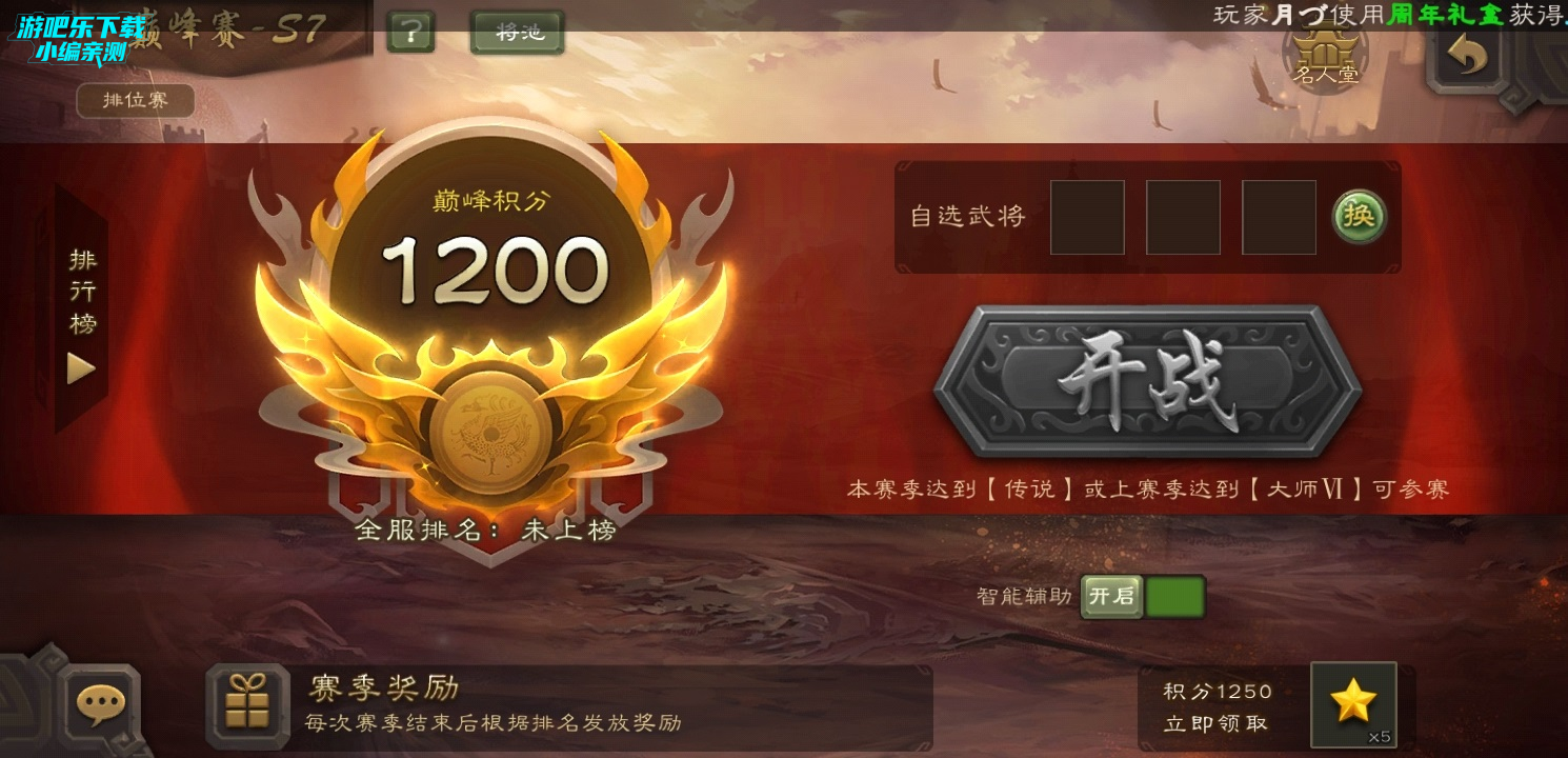 排行榜:顾名思义,但是我认为能够查看的榜单中最有用的只有巅峰赛武将分数赛季榜。