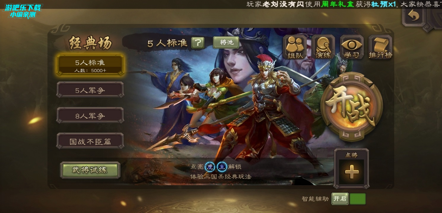 经典场位于游戏首页的左部,属于三国杀移动版中大热门模式,也就是平常两三个朋友在桌子上的玩法。
