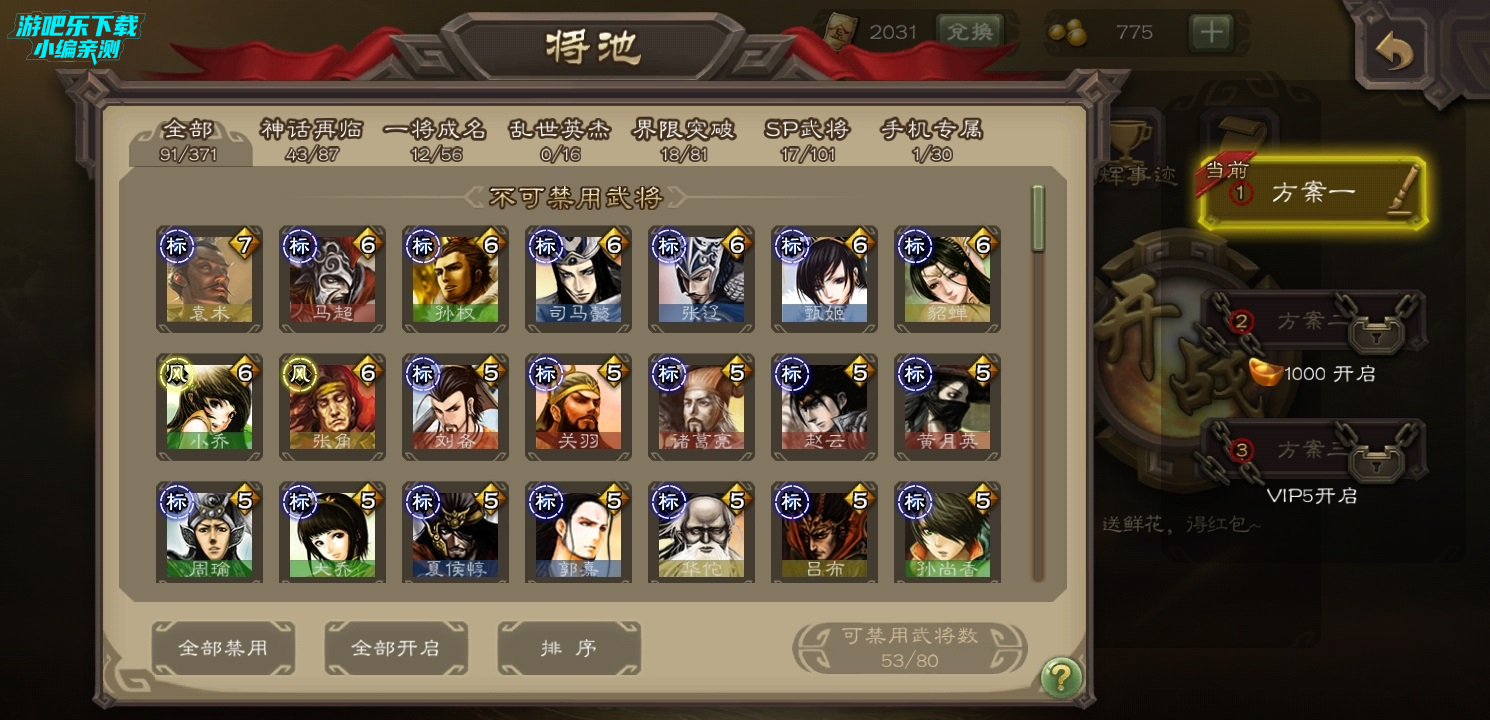 6、推荐武将(个人比较喜欢,且较平民化)