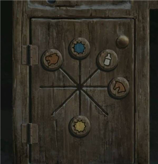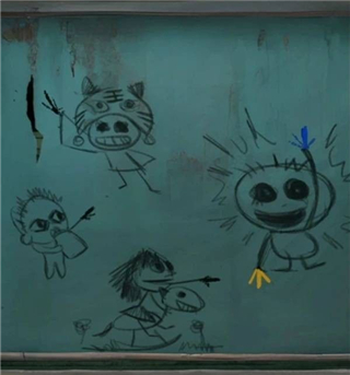再查看一下左边的柜子,图案刚好对应我们黑板上的图案,调整【虎头↖】【奶瓶↗】【木马→】【蓝色↑】【黄色↓】打开下面的柜子,拿到一个【剪纸小人】和一面【锦旗】,剪纸小人的姿势看起来有点眼熟,不就是安全通道的那个跑步小人吗?出来,走廊触发老奶奶剧情,这奶奶一看就是言她的盲奶奶吧!后面还没玩不确定哦。