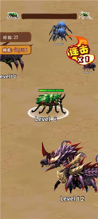 1、玩家迷失沙漠需不断进化,只有高级昆虫才能变得无敌。