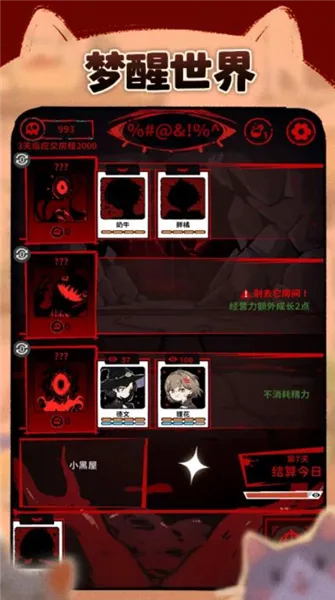 4、购买到德文后将会解锁里世界,我们需要通过清醒药唤醒猫咪,并安排他们去服务里世界的客人积攒探索度。