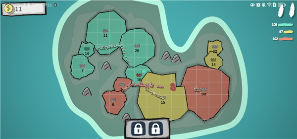 1. 简洁画面清晰领地:游戏画面设计简洁明了,通过不同颜色区分领地,让玩家能轻松知晓各领地情况,有助于更好地制定占领计划。
