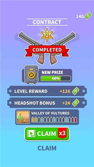 如果你想体验狂野西部的射击快感,那这款游戏绝对适合你。它是超有趣且动感十足的FPS射击游戏,有着卡通风格的精致画面,写实的狂野西部氛围,搭配趣味性十足的音效,能带来全新游戏体验。以西部荒野为背景,你将化身荒野牛仔,消灭荒漠敌人赢取胜利。这里有丰富枪支武器等你解锁,用它们打败更多敌人。多种不同地图场景供你探索挑战,还有大量精心设计的关卡,每个关卡背景各异,比如火车、船上、酒吧和古老小镇等。你不仅能享受射击乐趣,还能随意搭配多种装扮。玩法丰富,道具多样,炫酷狙击枪任你选,画面精良,适合在空闲无聊时玩。拿起狙击枪,隐蔽好自己,展示高超枪法,击败所有敌人,快来感受这独特的西部射击之旅吧!