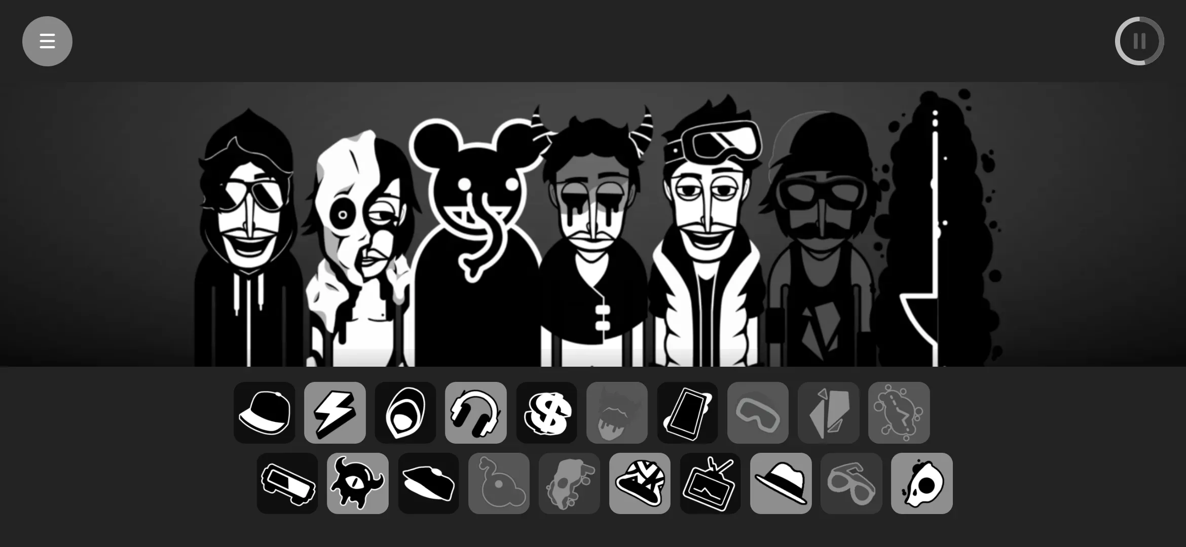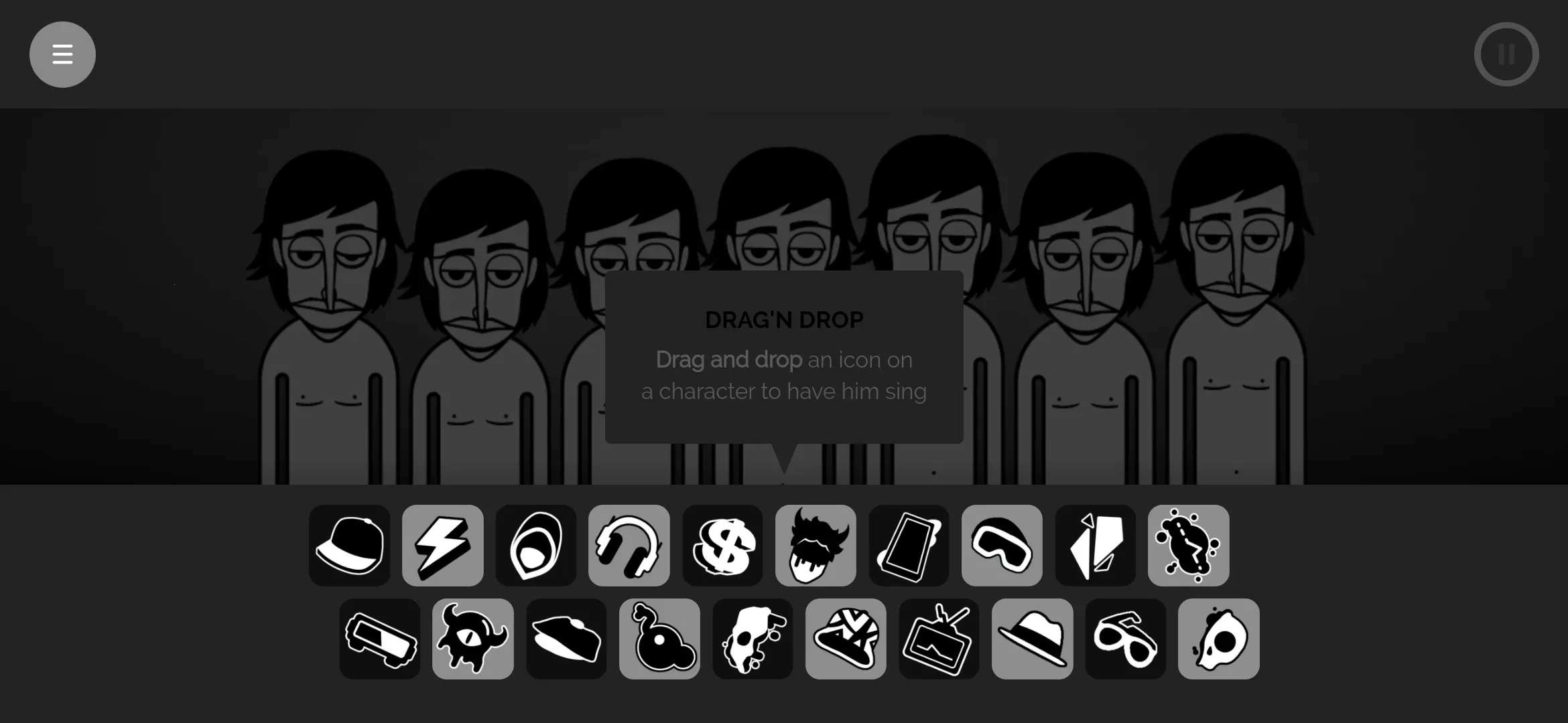 1、进入游戏后可以看到上方有各个人物,下方是各个不同的音符;