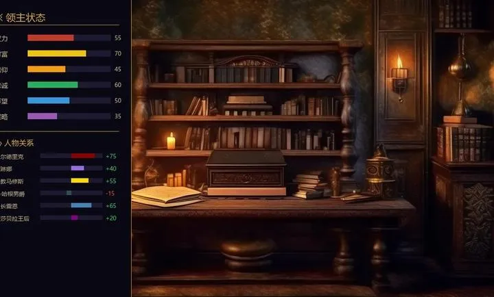 2. 六维属性系统,武力智谋魅力等属性决定可用选项,无最优解,全凭玩家选择。