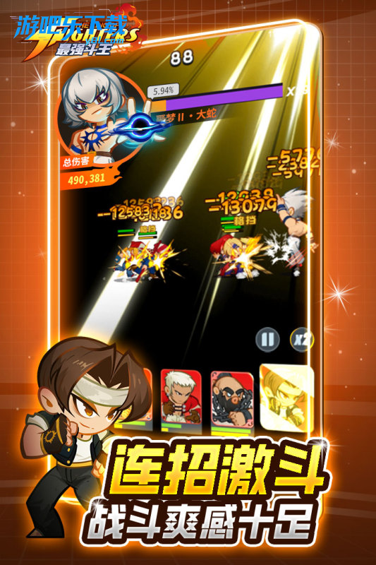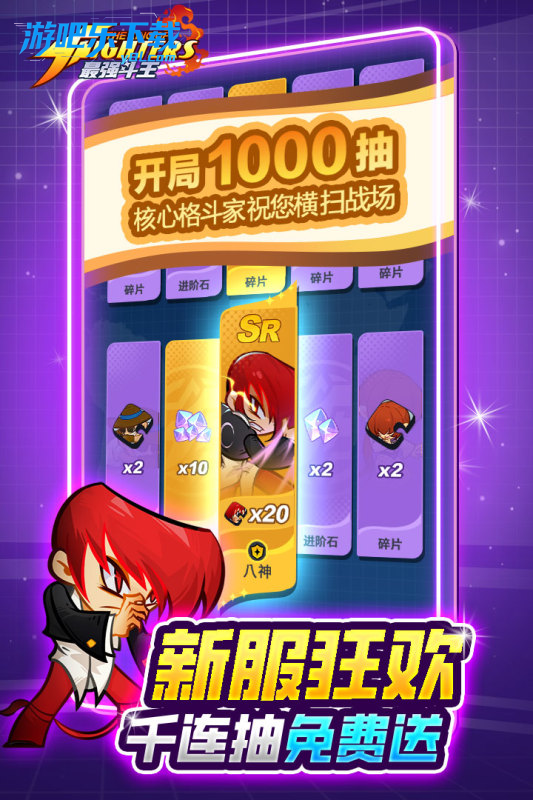 最强斗王官方版下载是SNK 正版授权的《拳皇 97》IP 改编手游。主打Q 版萌化 + 回合制卡牌 + 放置挂机 + 格斗式战斗,兼顾情怀与休闲策略。登录即送千抽、十连必出金卡、首充送不知火舞!