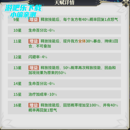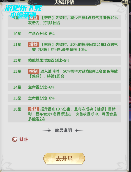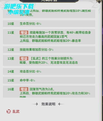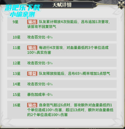 吕布的9星,11星,14星,16星的天赋都是质的提升,怒气叠满之后基本能一回合秒一到两个敌方武姬。