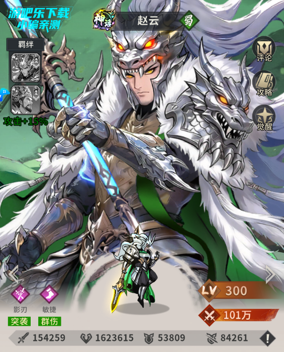 · 觉醒4阶:【雷影分身】每触发1次【云龙一现】,赵云永久提升4%的攻击,最多提升40%。