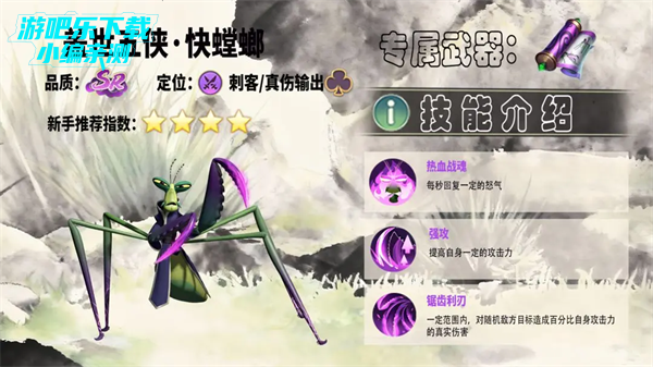 快螳螂虽然爆发力极强,但生存能力较弱,需依赖团队保护。其兼具真伤机制,实际强度远超当前品质,既是前中期PVP的利器,也是推进副本的关键角色。在前期关卡中堪称“后排杀手”,能有效克制高威胁目标。