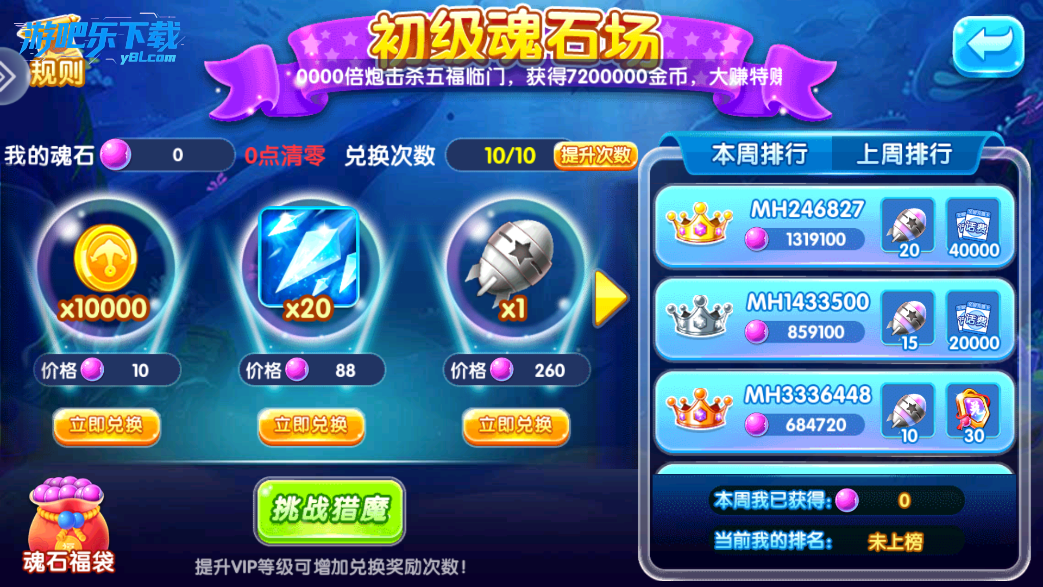炮台倍率:1–10000 倍,倍率越高消耗越大、收益越高