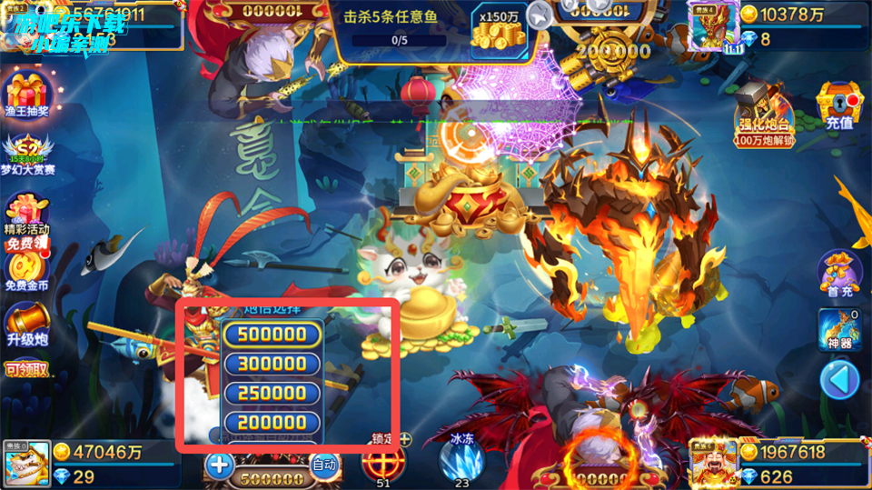 倍率越高,单炮伤害越高,对高级鱼的捕获概率显著提升。
