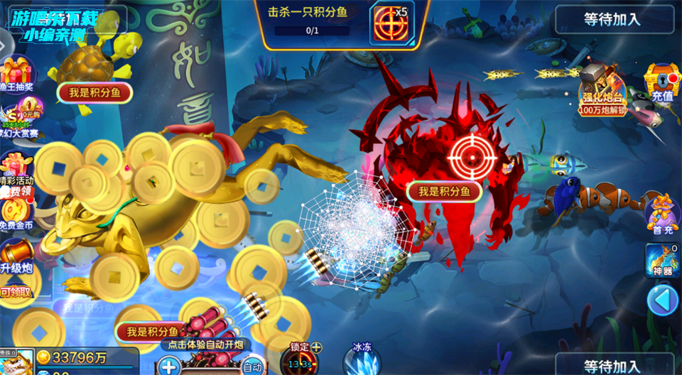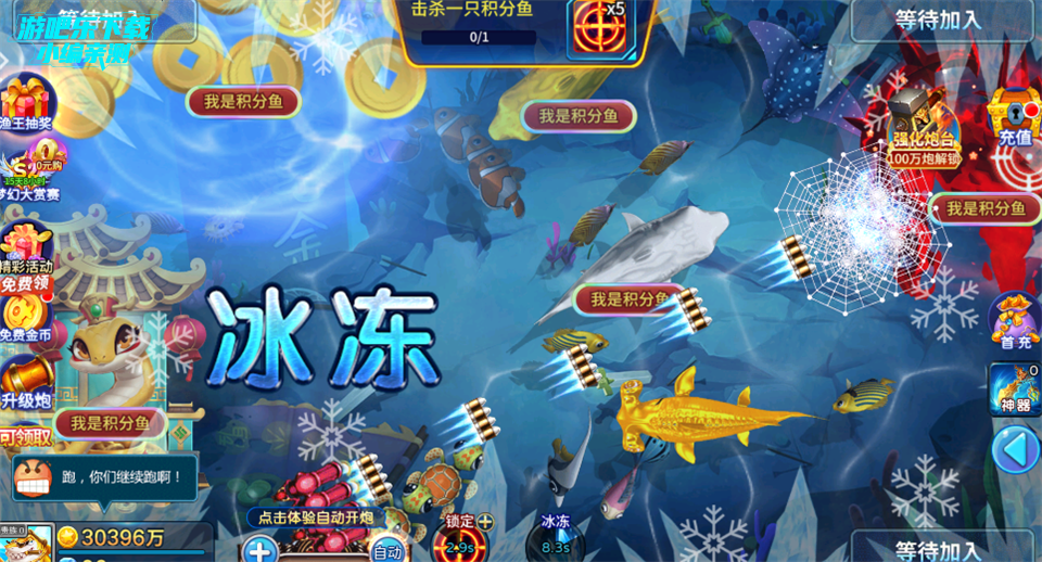 使用可冰封全屏鱼一段时间,怕大鱼游走,就多使用冰冻技能吧