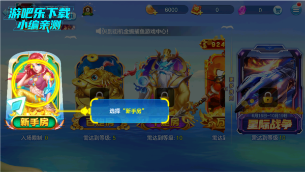3、选择比赛,新手开始只能玩“新手渔场”,后期可以解锁更多模式;