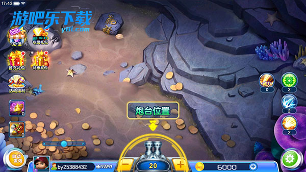 2、然后在这里可以根据自己的炮台选择对应的渔场进入;