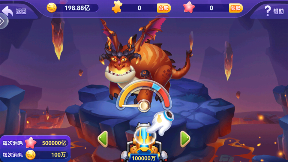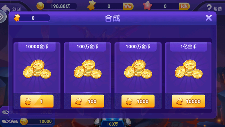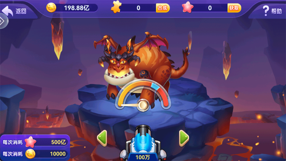 3.点击炮台左右两边的箭头,可调整炮台的倍率,炮台倍率越高,获得的碎片越多,但同时消耗的金币也越多。