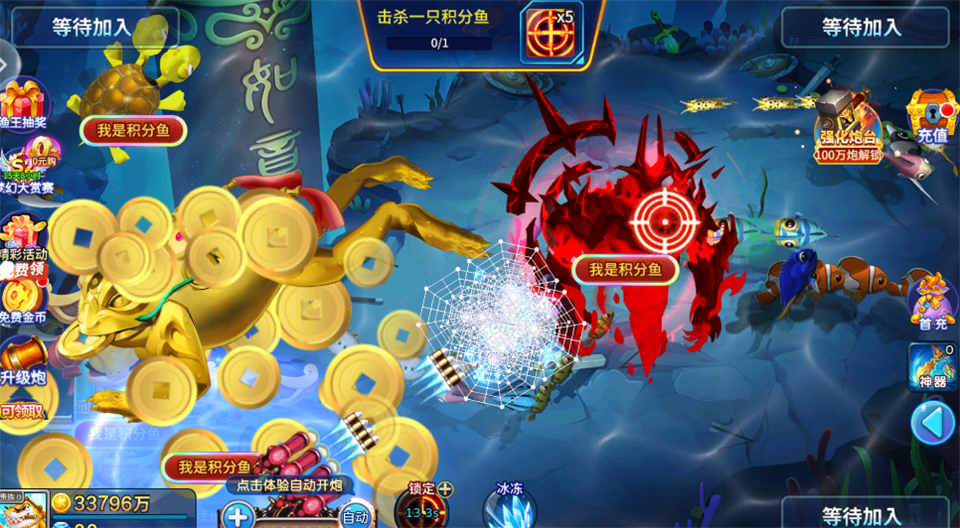 优先打奖金鱼与 BOSS,用技能提升效率。