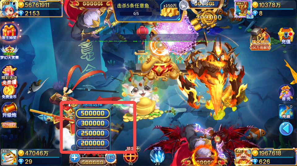 倍率越高,单炮伤害越高,对高级鱼的捕获概率显著提升。