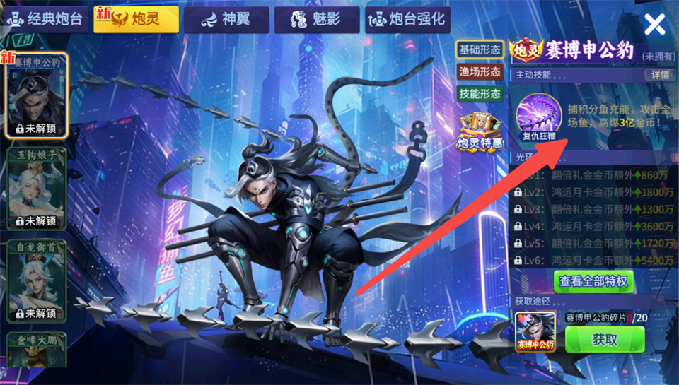 不同炮灵带有不同技能,如申公豹可捕积分鱼充能,攻击全场鱼。