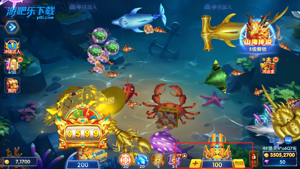切换倍率:屏幕下方 “+/-” 调整炮倍(10 倍~10000 倍)。