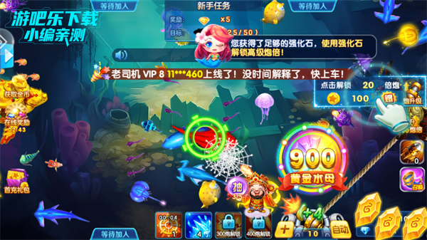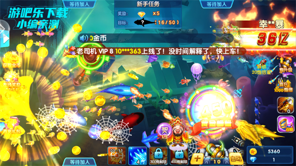 4、我们点击游戏屏幕便可以开始自己的捕鱼新征程。